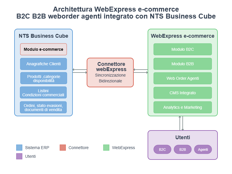 “Non si tratta di un semplice collegamento tra sito e gestionale. Con webExpress ogni dato, llistino, disponibilità, scadenziario, fido viene direttamente dall’ERP che già usi. Zero duplicazioni, zero disallineamenti.”